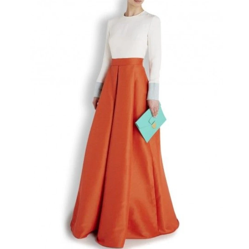 Long formal skirt Clearance, Modest Orange Satin Pleated Skirt Clearance