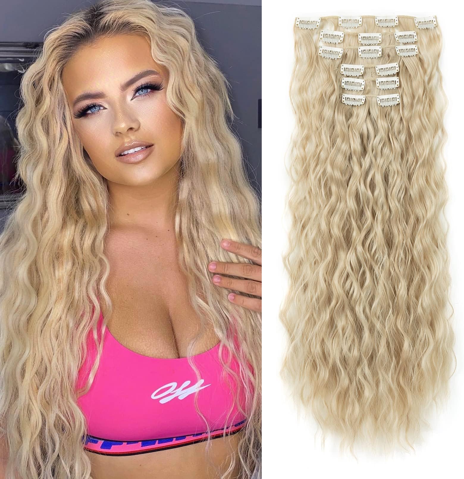 - Blonde curly hair extensions clip in sale