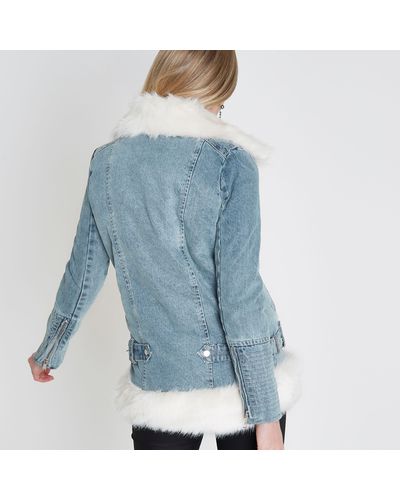 - River island denim fur coat shop
