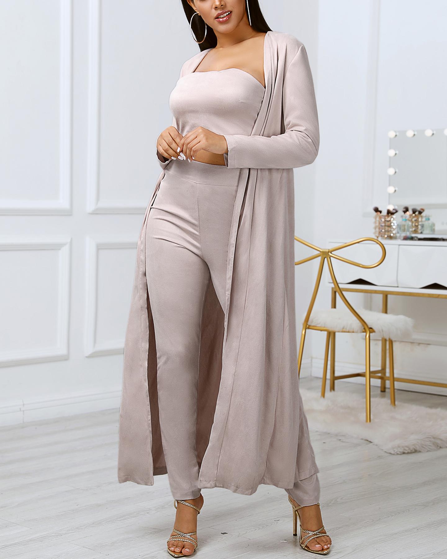 - Cardigan coat with top and pants free shipping