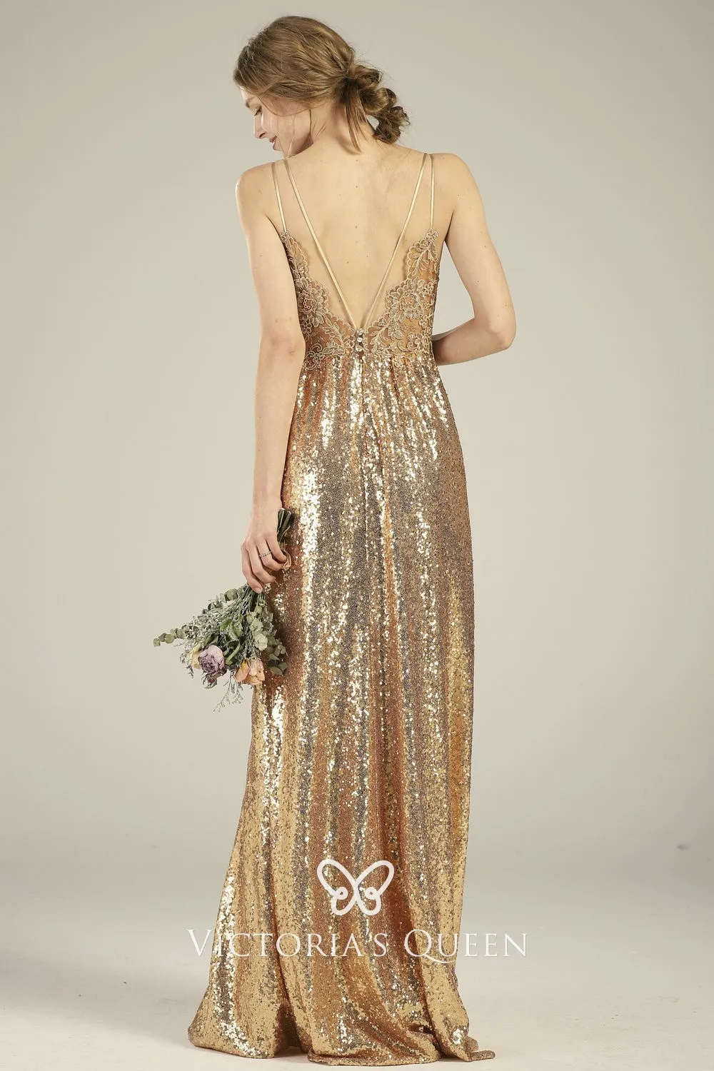 - V neck gold sequin dress outlet