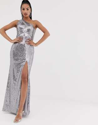 - One shoulder sequin slit dress clearance