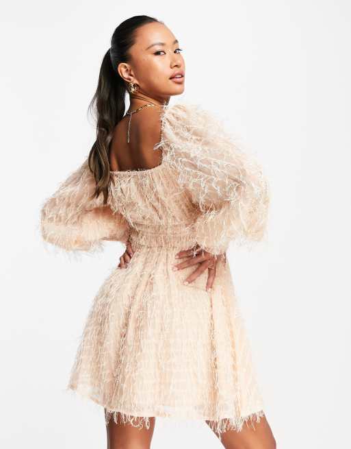 Asos puffy dress Clearance, ASOS DESIGN fluffy mini dress with ruched bust and shirred cuffs in pale pink | ASOS Clearance
