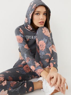 - Love gesture print crop hoodie clearance