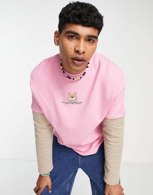 Teddy fresh asos Clearance, ASOS DESIGN oversized pink sweatshirt with double layer sleeve with cartoon print | ASOS Clearance