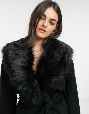 - Cheap Black belted coat with fur collar