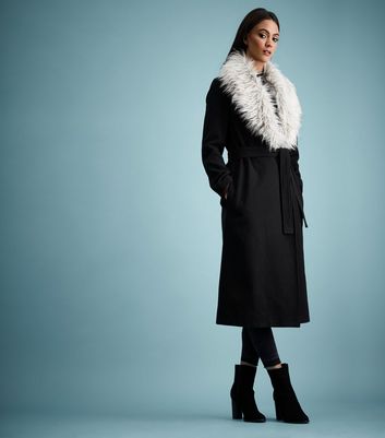 - Black belted coat with fur collar outlet