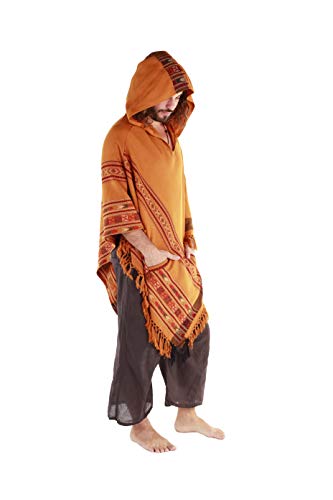 Mens hippie poncho Clearance, Mens Hooded Poncho Orange Cashmere Wool Clearance