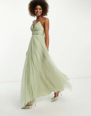 Asos mint bridesmaid dress Clearance, ASOS DESIGN Bridesmaid cami pleated tulle maxi dress in sage | ASOS Clearance