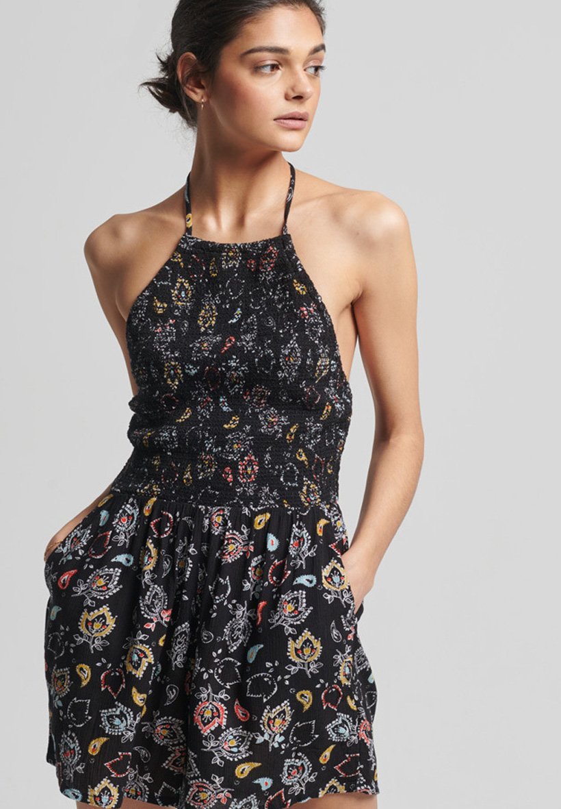 Black smocked jumpsuit Clearance, Superdry VINTAGE SMOCKED - Jumpsuit Clearance