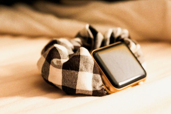 Gingham apple watch band Clearance, B\u0026W Gingham Apple Watch Scrunchie Band Clearance