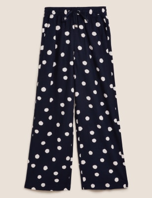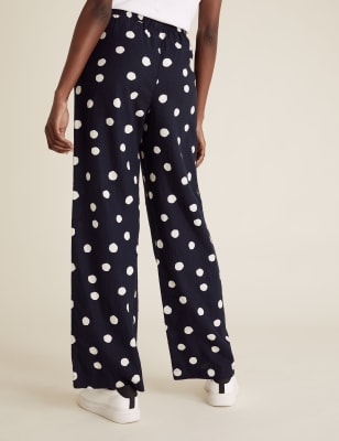 Navy polka dot trousers Clearance, Linen Polka Dot Wide Leg Trousers | M\u0026S Clearance