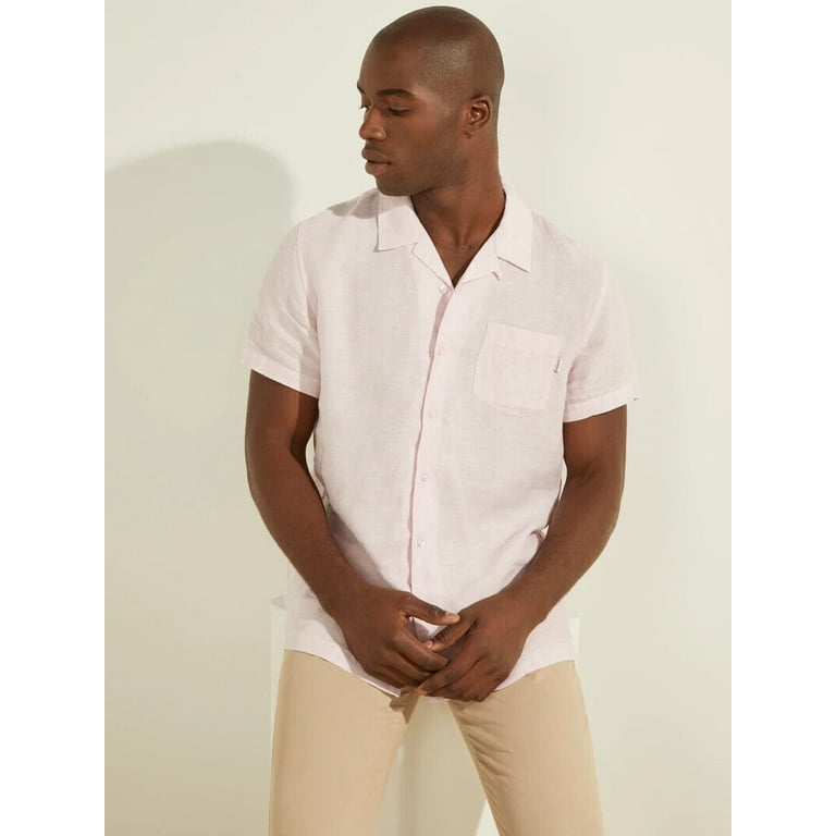 Guess men's shirts & tops Clearance, Guess Men's Regular Fit Eco Linen Camp Shirt in Blossom Light Pink Multi-Small - Walmart.com Clearance
