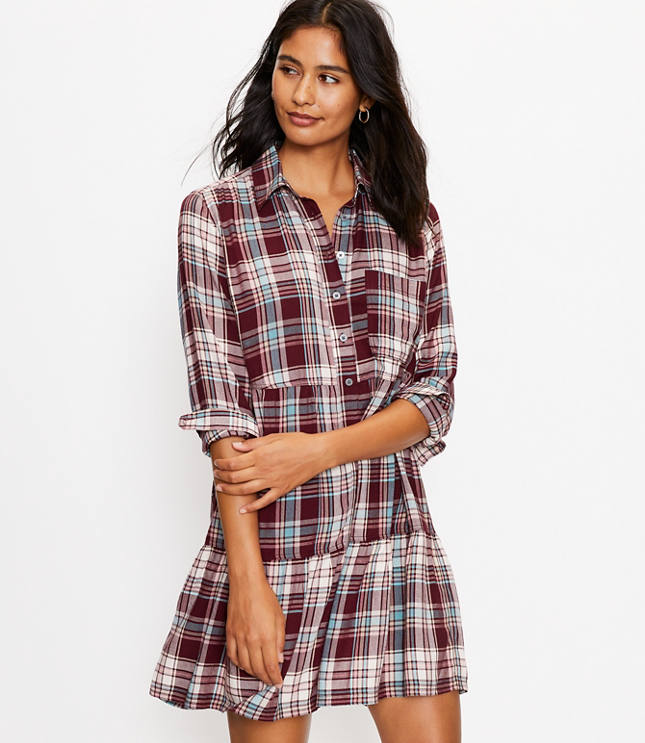 Plaid shirt dress women Clearance, Petite Plaid Tiered Pocket Shirtdress Clearance