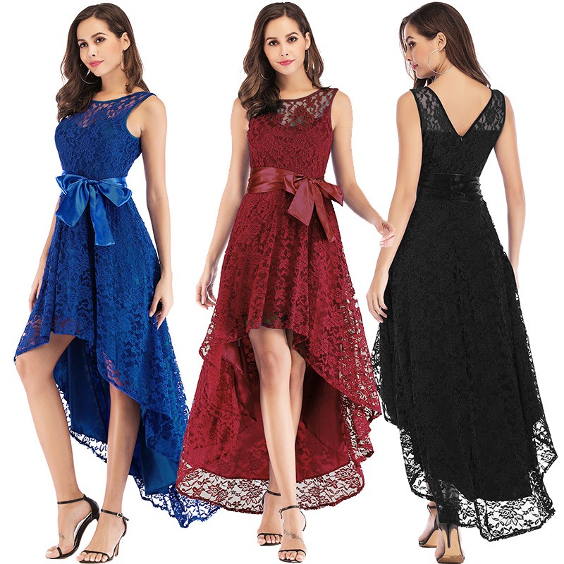 - Shopping High low sleeveless belted lace dress