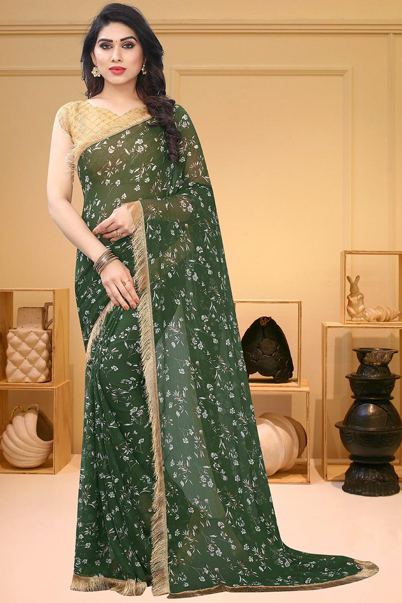 Green saree chiffon Clearance