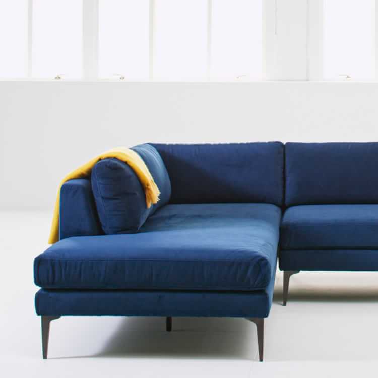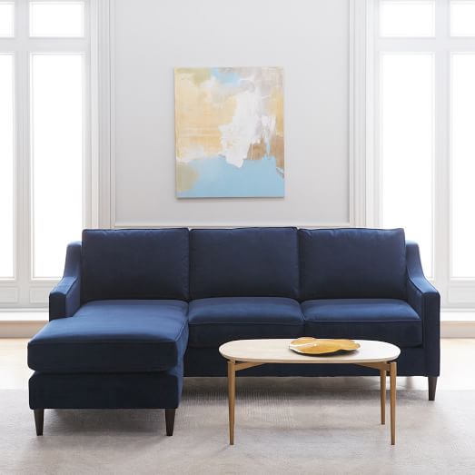 - West elm blue velvet couch sale online