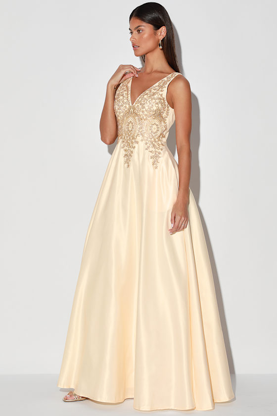 - Champagne embroidered dress clearance