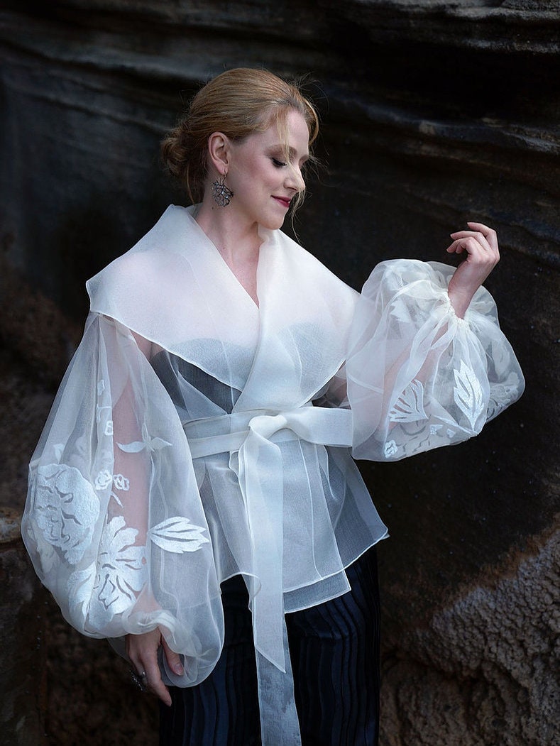 Silk organza jacket Clearance, Washed Silk Organza Sheer Kimono Jacket Clearance