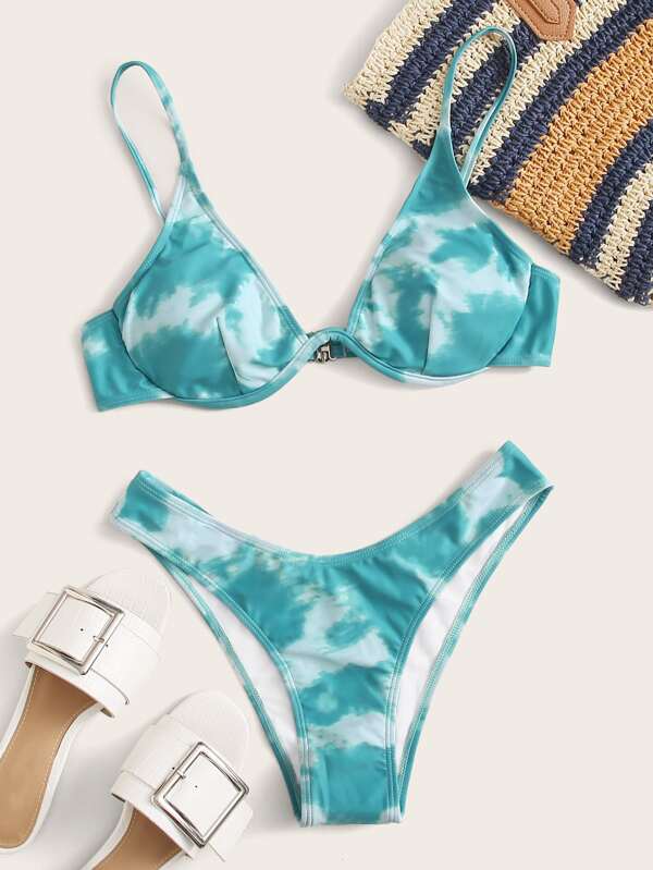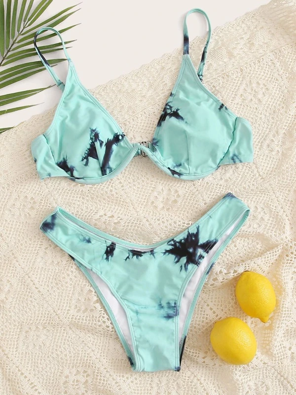 - Tie dye underwire high cut bikini swimsuit