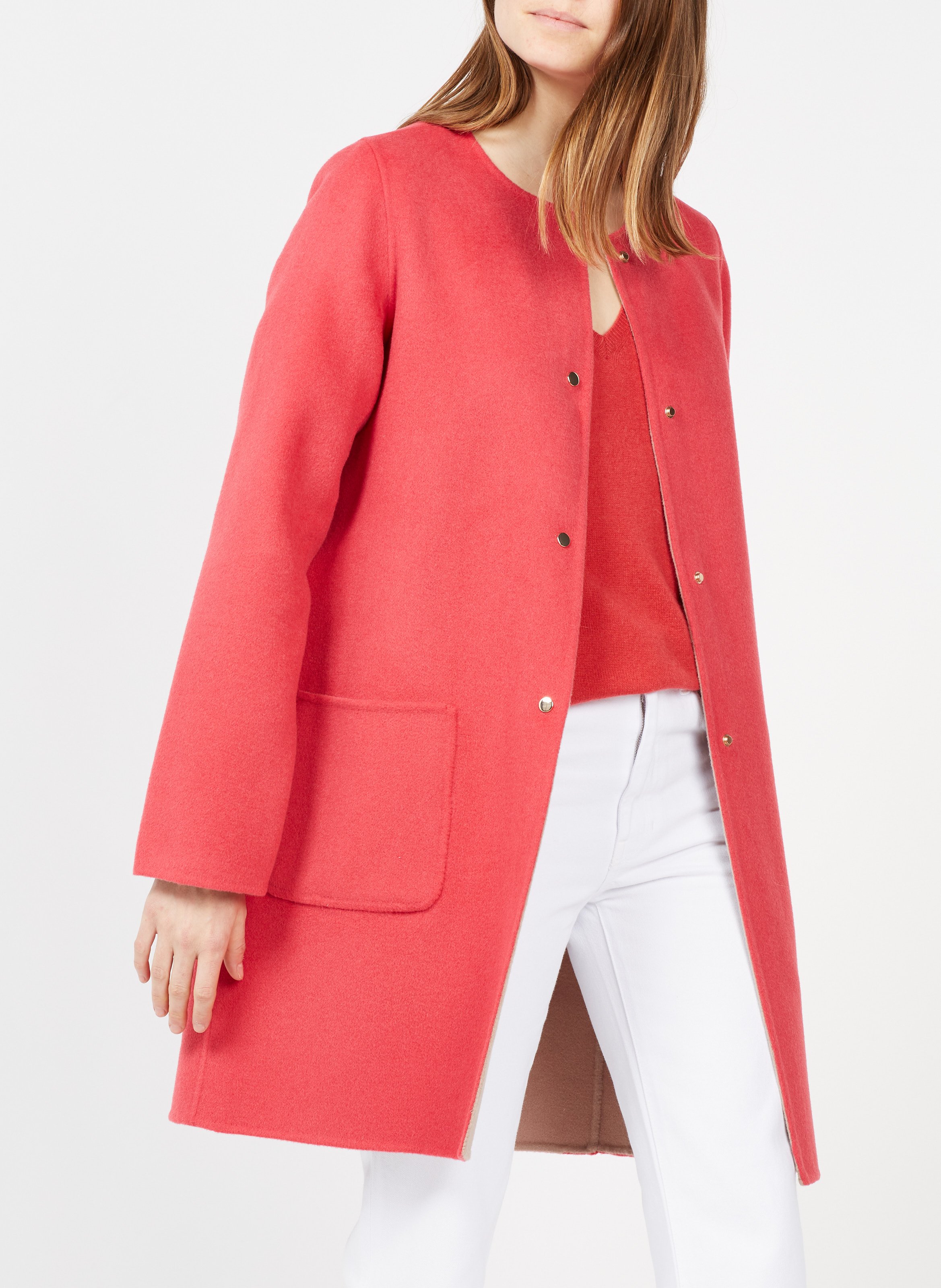 Gerard darel reversible coat Clearance, Round-neck Reversible Wool Coat Corail Clearance