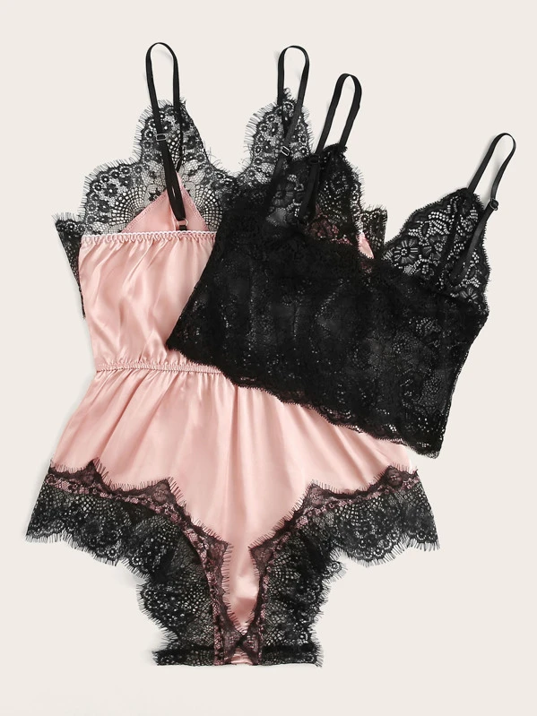 Teddy bralette Clearance, Bralette con pizzo e Body teddy in raso Clearance