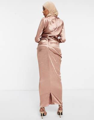 - Asos design high drape neck maxi with long sleeves in navy shop