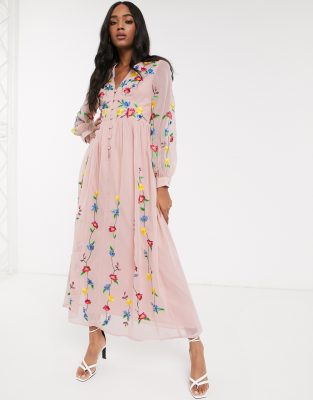 Asos pink embroidered dress Clearance, Asos Design Coin Smocked Maxi Dress Clearance