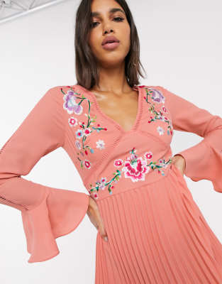 - Asos pink embroidered dress sale online