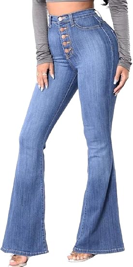 Jeans that flare at the bottom Clearance, Flare Wide Leg High Rise Denim Pant Clearance