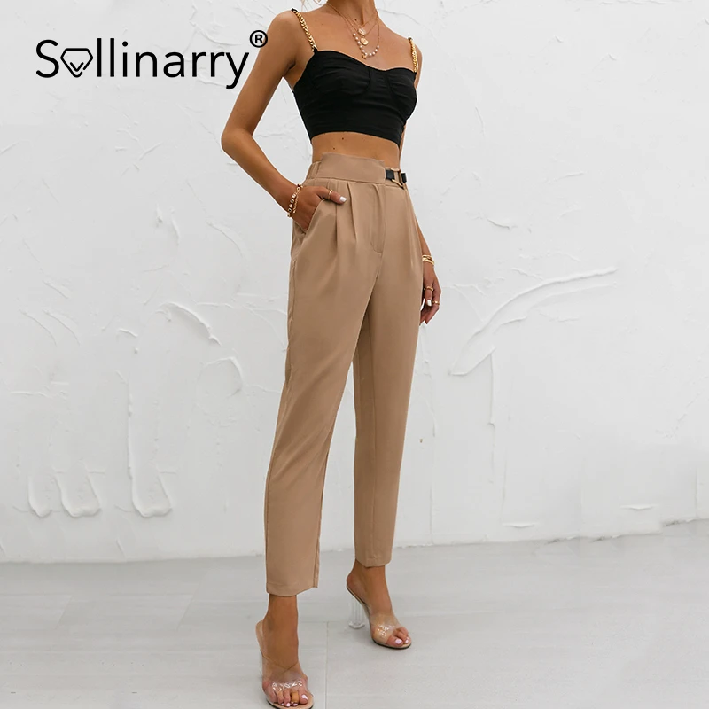 - Khaki high waisted trousers free shipping