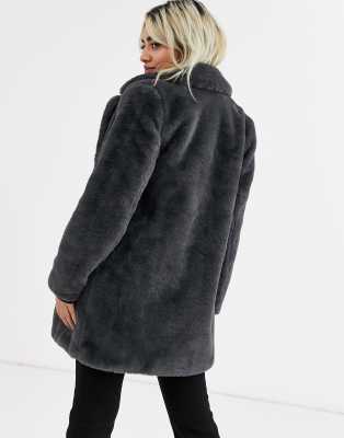 Petite grey faux fur coat Clearance, New Look Petite faux fur coat in dark Clearance