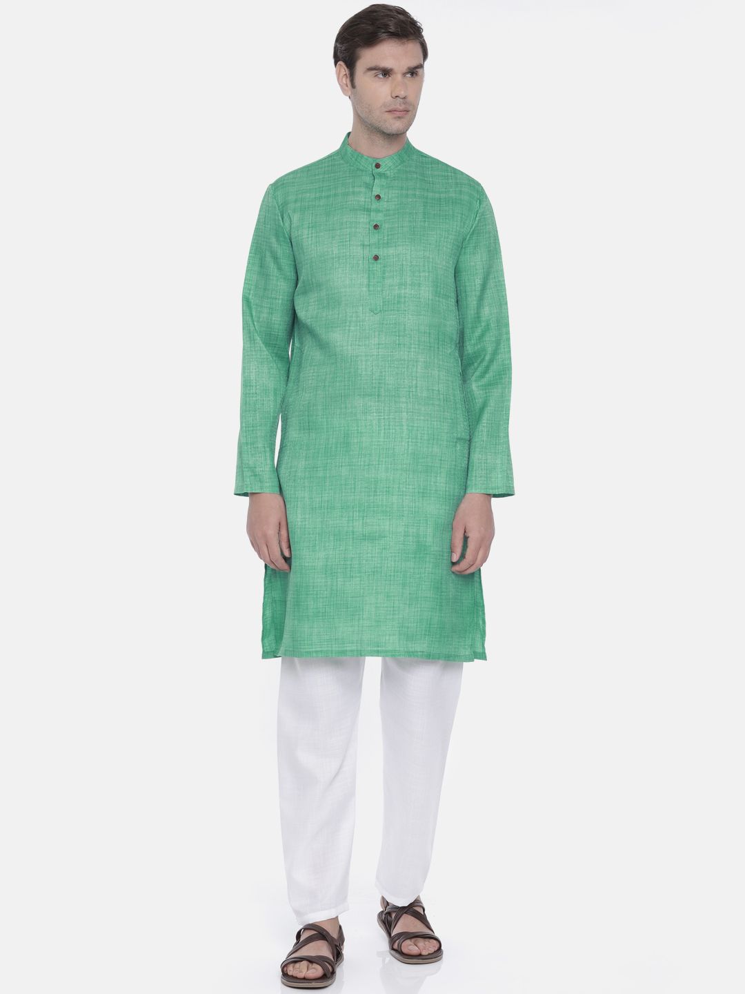 Freehand kurta pyjama Clearance, Freehand Green Cotton Kurta Pyjama Set Clearance