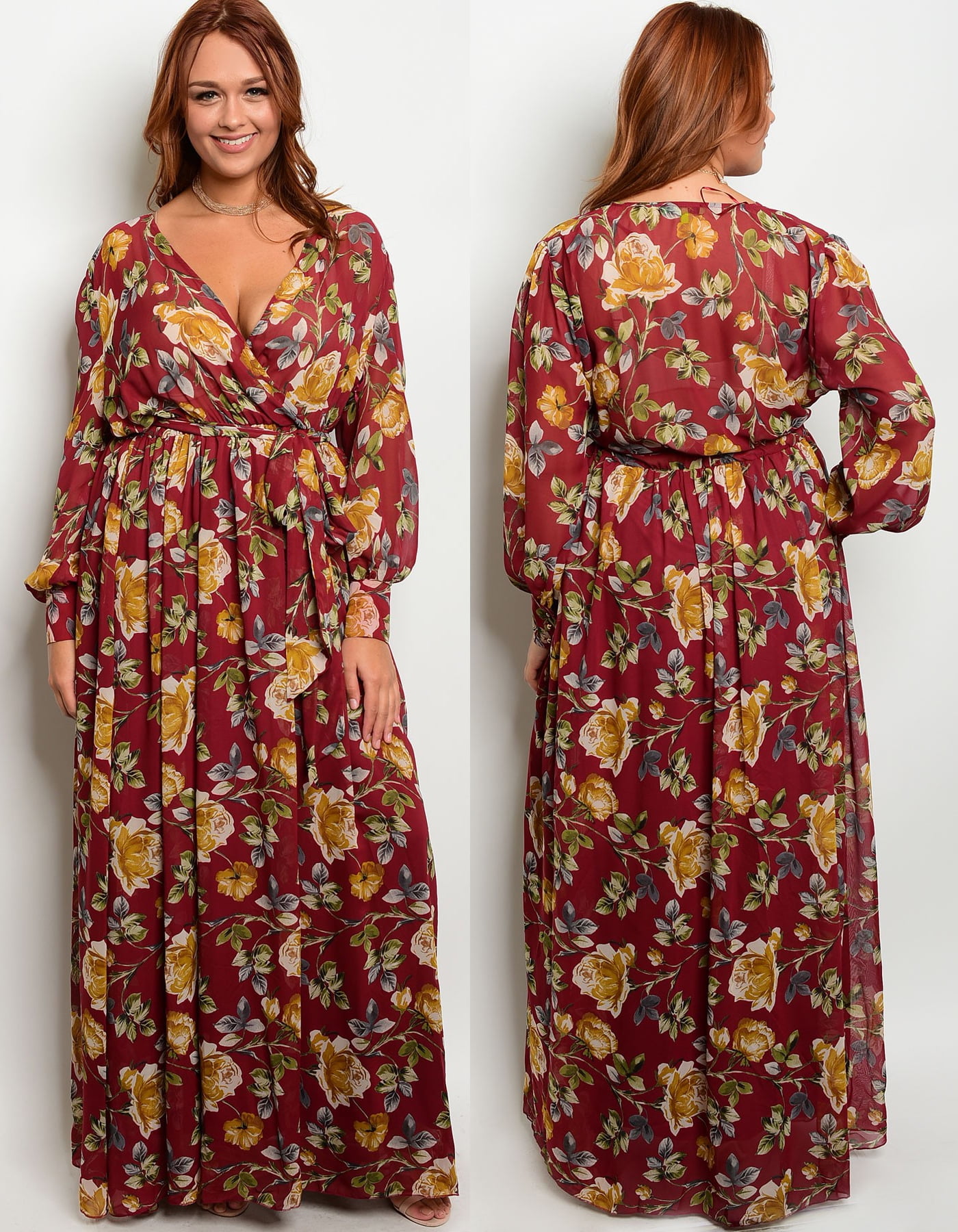 - Plus size long sleeve floral maxi dress outlet