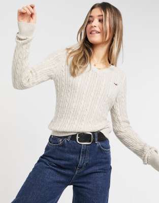 Hollister knitted sweater Clearance, Hollister v-neck cable knit sweater in Clearance