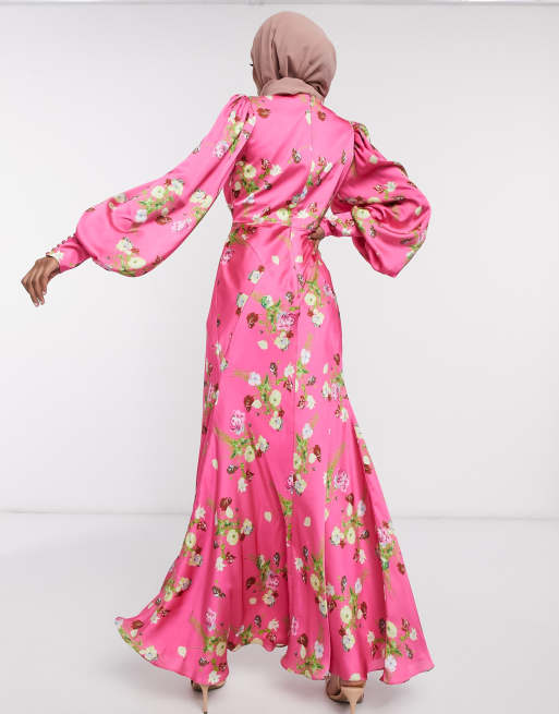 - Asos edition satin wild flower print maxi dress sale