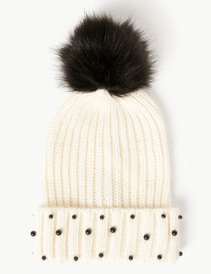 Pearl beanie hats Clearance, Embellished Pearl Pom Beanie Hat | M\u0026S Clearance