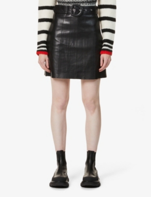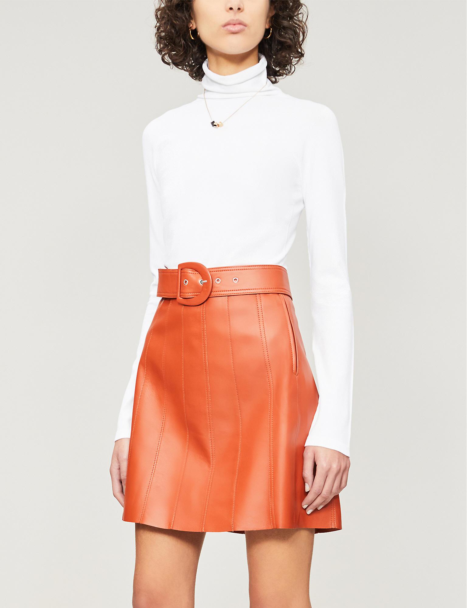 Sandro leather skirt Clearance, rise Contrast-stitching Leather Skirt Clearance