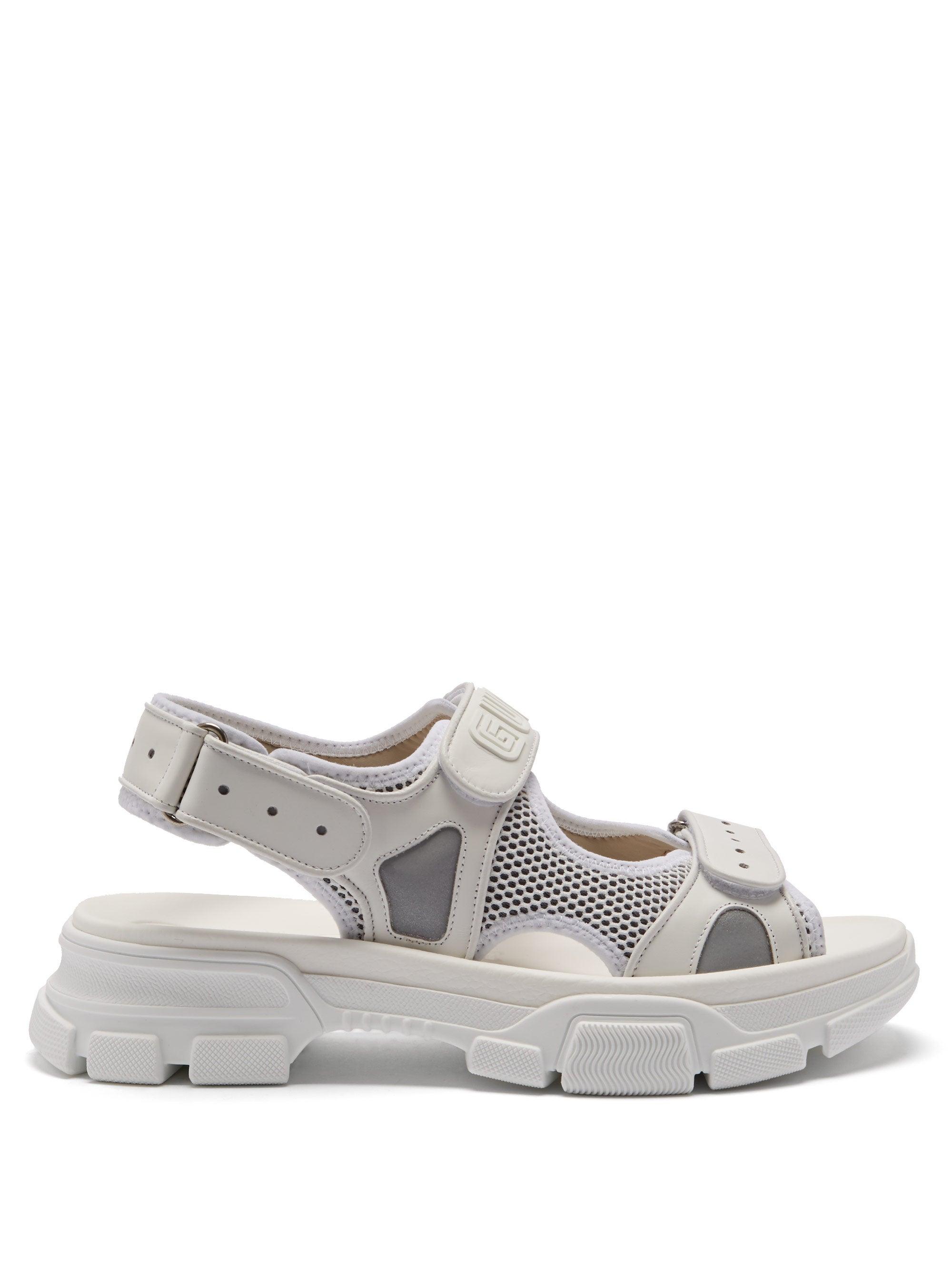 Leather and mesh sandal Clearance, Gucci Leather And Mesh Sandals in White Clearance