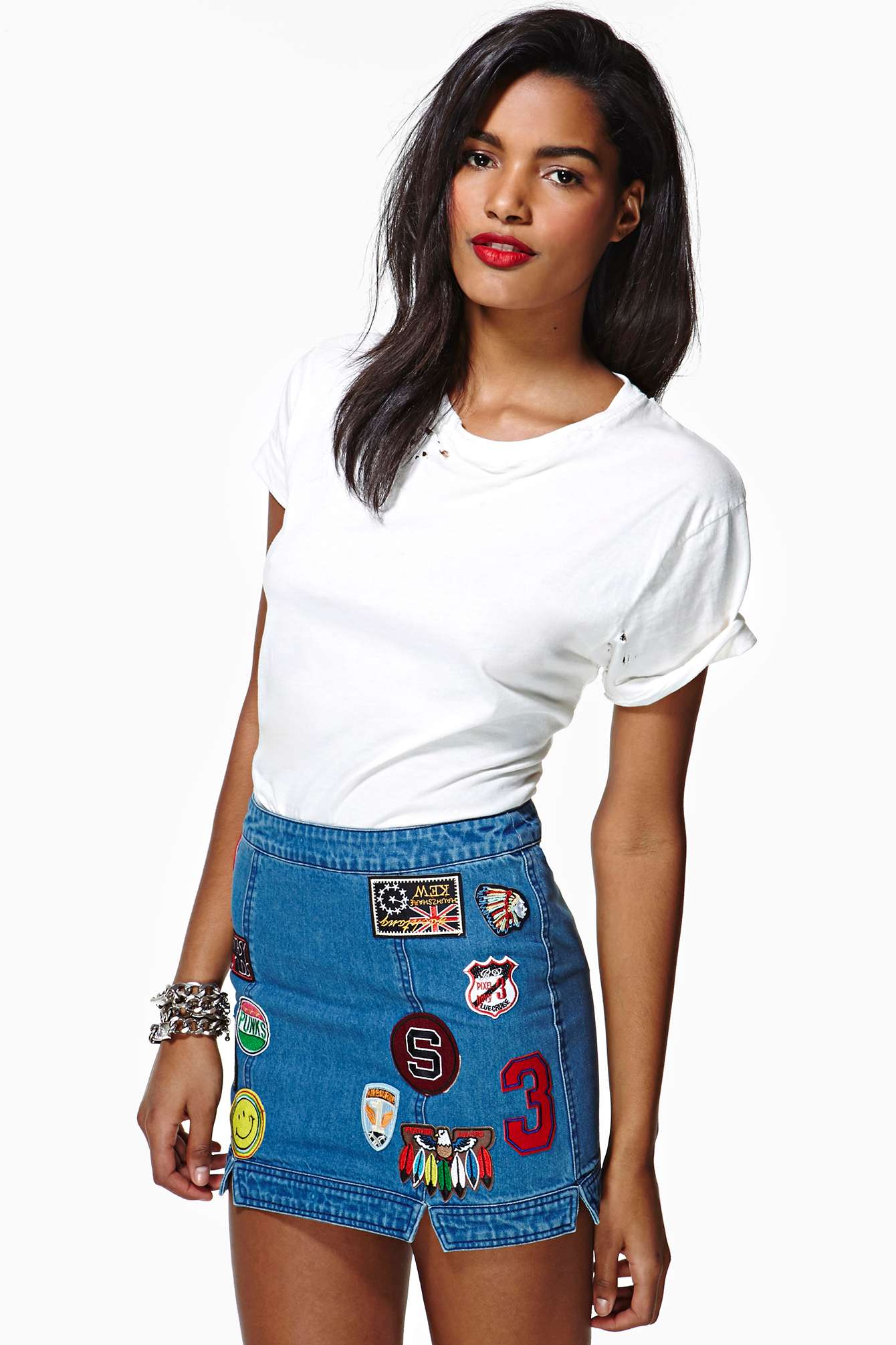 - Denim skirt with patches free shipping