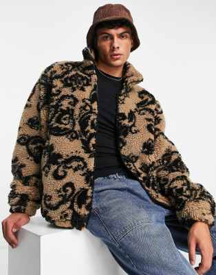 Versace jeans couture strickjacke Clearance, Versace Jeans Couture – Jacke aus Teddyfell in Beige mit Paisleymuster Clearance
