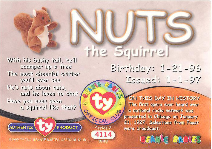 - Ty beanie baby nuts the squirrel