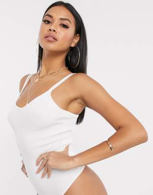 Cream knit bodysuit Clearance, Re_Styld Cream Rib Layered Knit Clearance