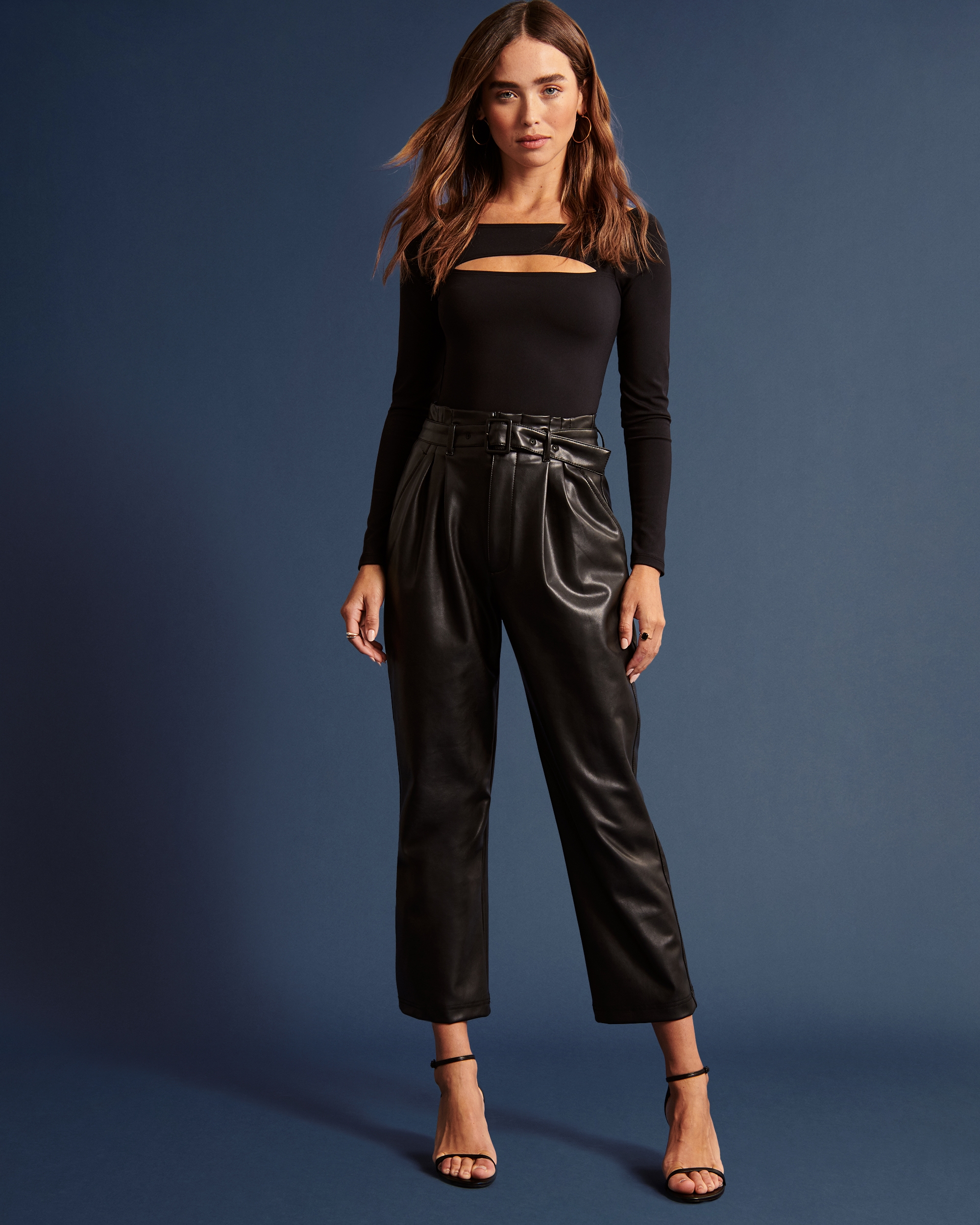 Vegan leather ankle straight pants Clearance, Women's Vegan Leather Belted Ankle Clearance