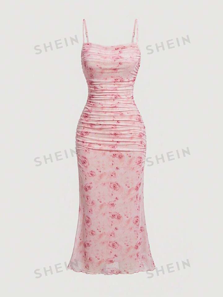 Kleid rosa shein Clearance, SHEIN SXY Rosa Kleid Valentinstag Kleid Mit Dreidimensionalem Rosenmuster, Träger-halterneck Design Und Fishtail Langer Rock | aktuelle Trends, günstig kaufen | SHEIN Deutschland Clearance