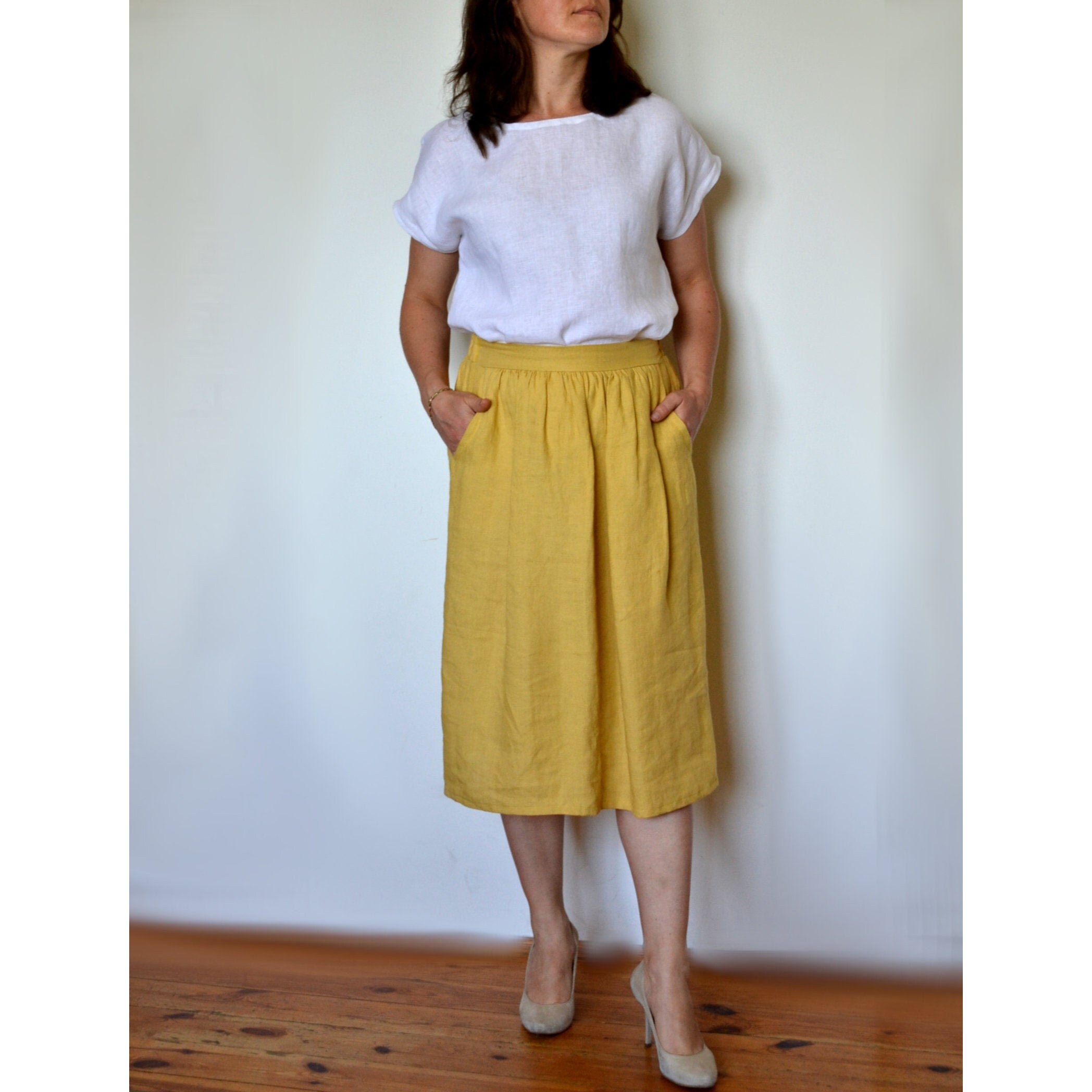 Linen midi skirt with pockets Clearance, Linen Skirt with pockets, Aline washed Clearance