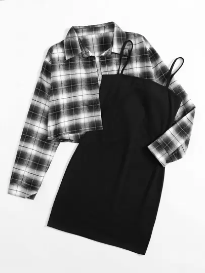 - Cami dress and plaid crop top shop