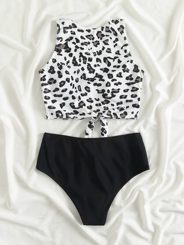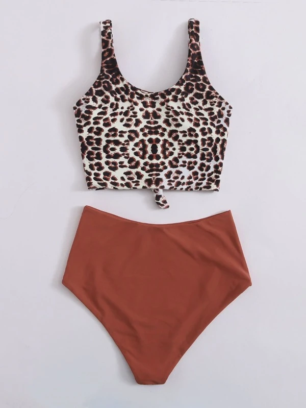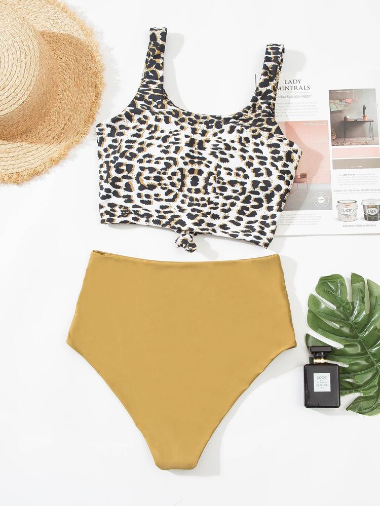 - Leopard knot hem bikini swimsuit shop