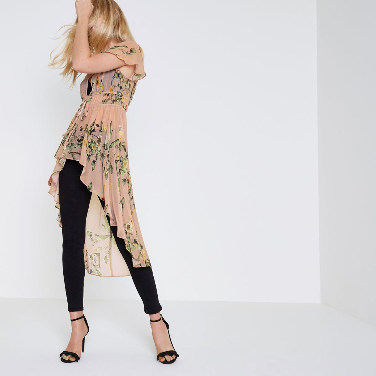 High low kimono top Clearance, Light Pink Floral High Low Hem Kimono Clearance