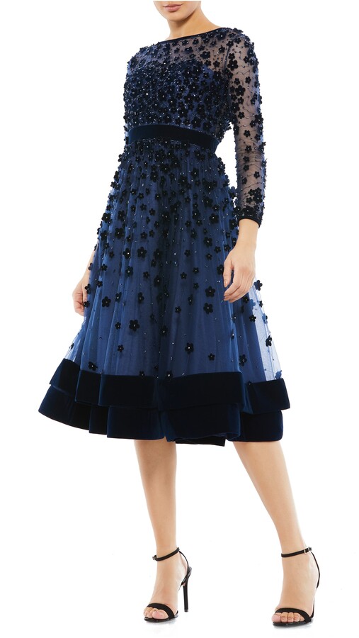 - Shopping Long sleeve fit & flare velvet embellished cocktail dress